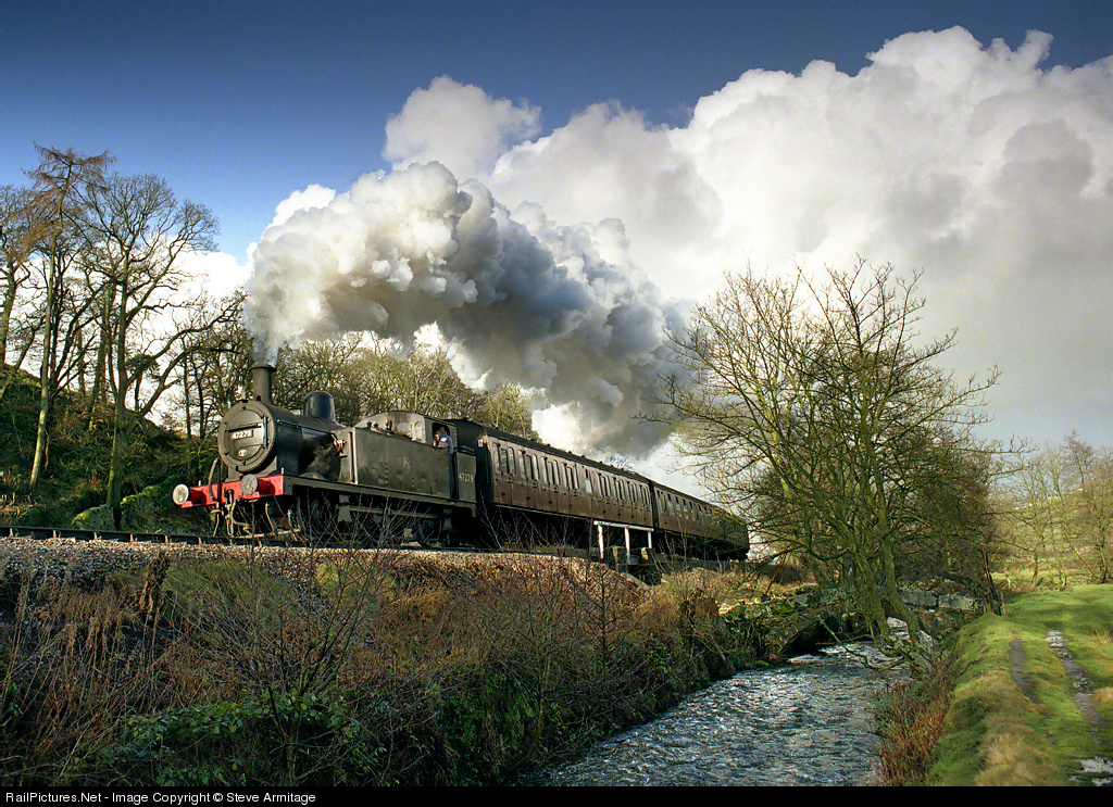 Breezin' along. As it has for centuries, Bridgehouse Beck sparkles beneath the 16th century pack horse bridge in the valley below Oxenhope. The horse route, now a footpath, rises diagonally on the hillside behind the newcomer in this scene - the railway which made these ancient trade routes redundant. Sadly, this magical view is now impossible because of unchecked streamside sapling growth.