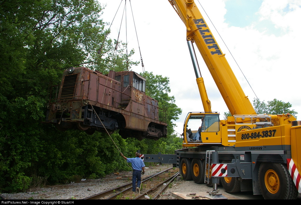 Former NC&STL 100 (L&N 3100) aka TSRR 100 is flying high while being loaded onto a lowboy for transit to it's new home at the Cowan Railroad Museum