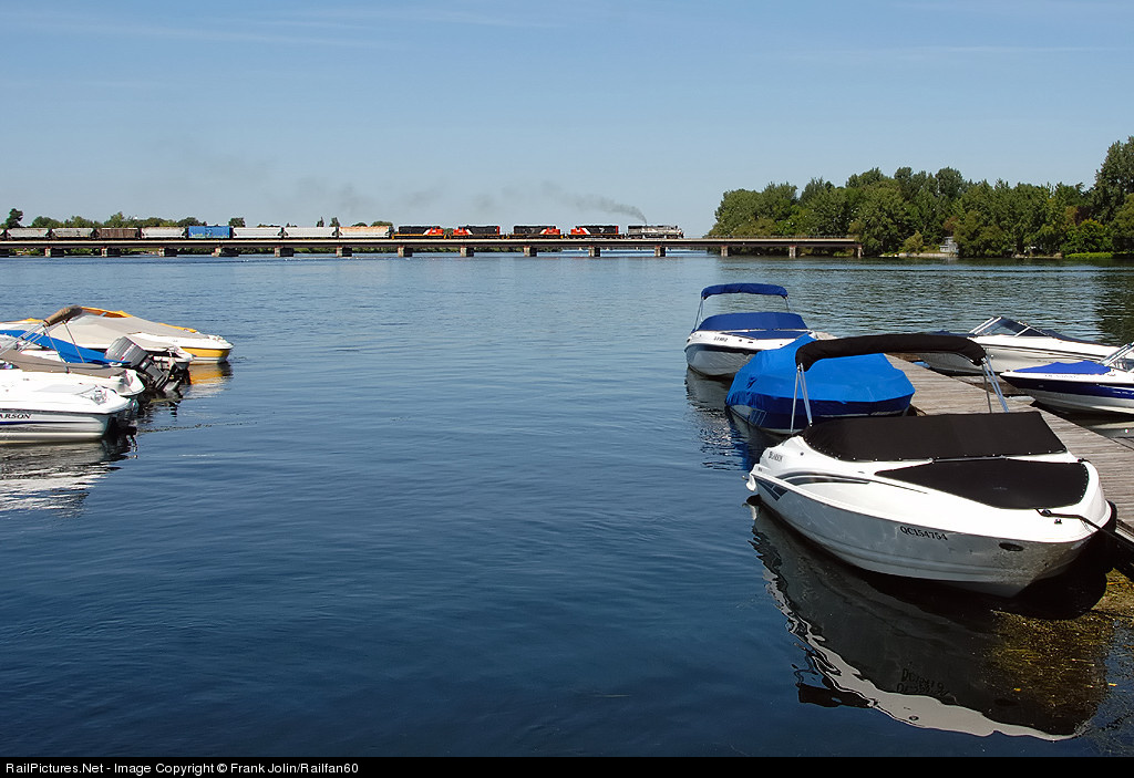 Train # 810 rolls across the Richelieu River towards Farnham Yard