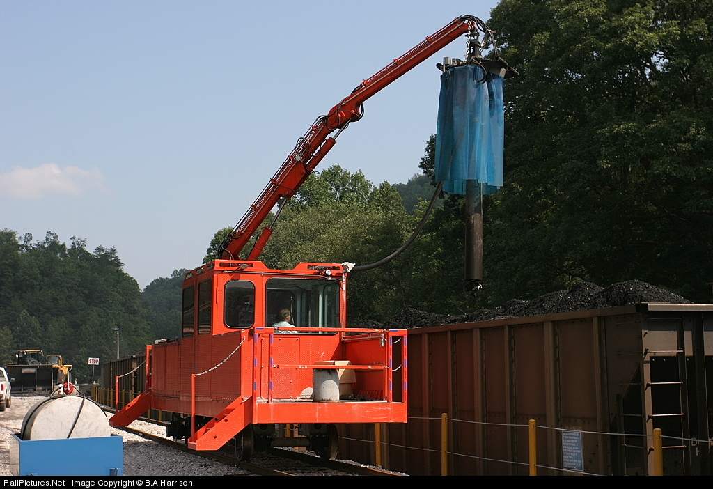 Yes, it has a motor and it runs on the rails. Made by Johnson Industries and the first in the US, this auger sampler takes coal from each utility bound hopper as it passes by at Turley. Refer to 245898 for another view. Note the heavy coal dust in the background as mtys are loaded with three wheel loaders.
