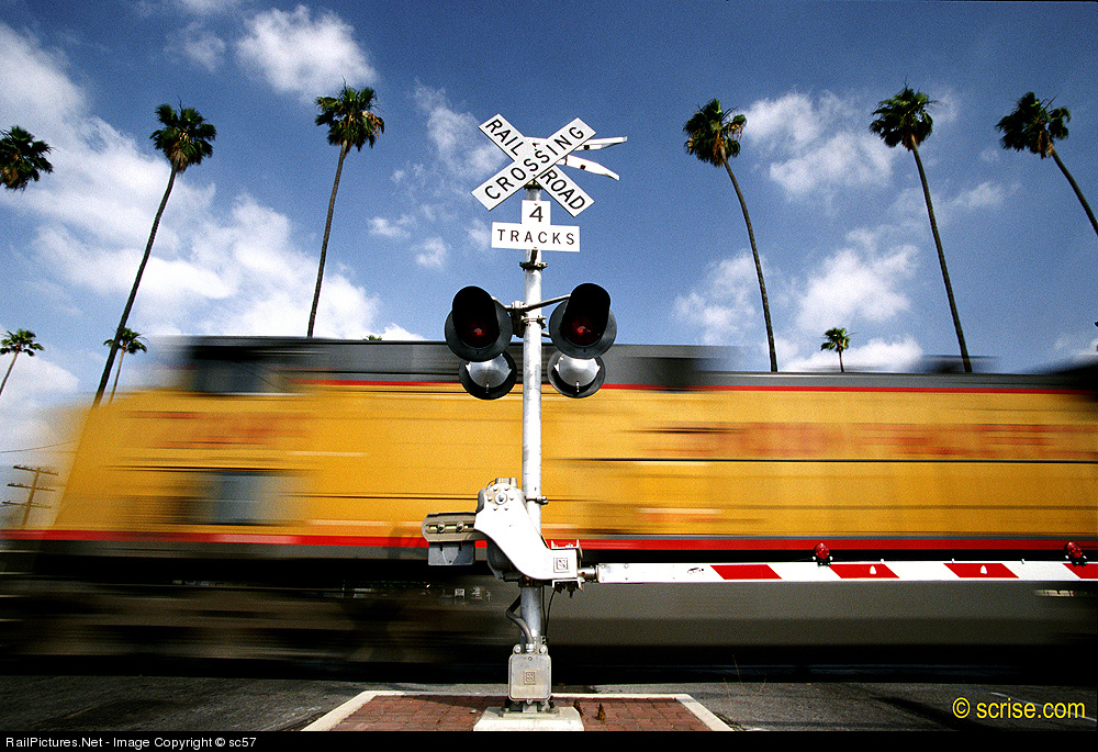 Palm trees and railroad locomotive, Riverside, Ca. 2000 Steve Crise Photo. © scrise.com