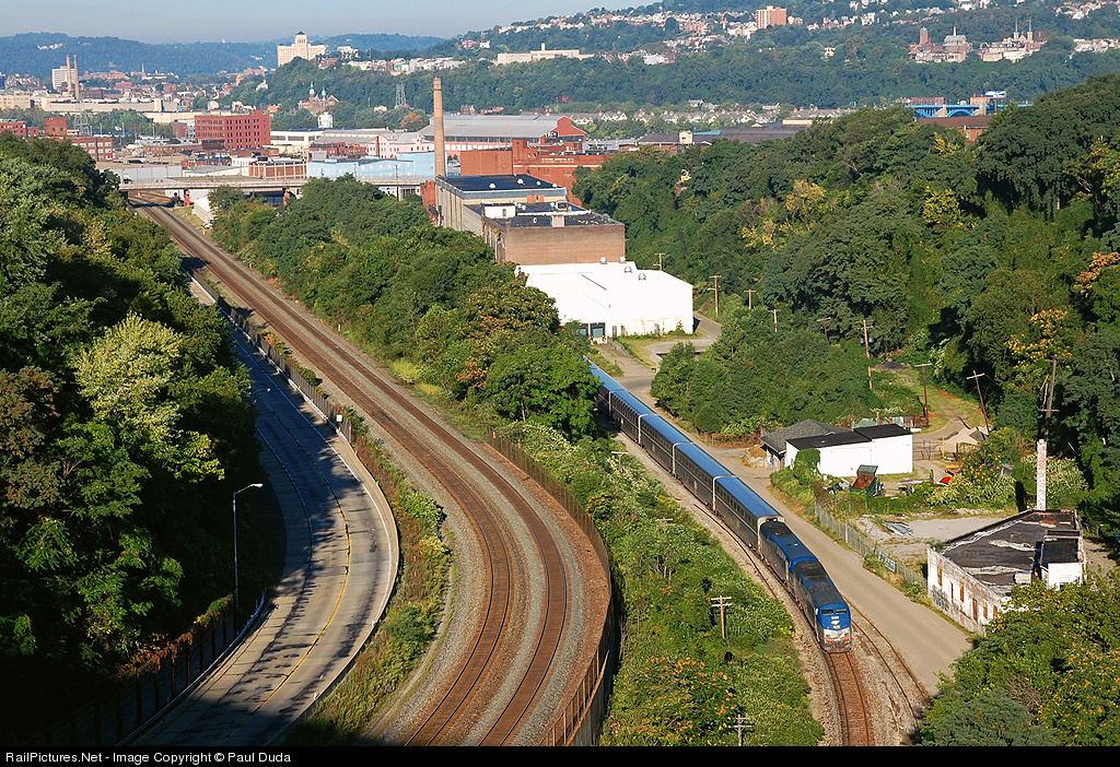 Amtrak 30 rolls east out of the city of Pittsburgh running over two hours late on Labor Day 2008. The NS Pittsburgh Line is on the left and Amtrak just took the AVR connection at Bloom to get onto CSX.