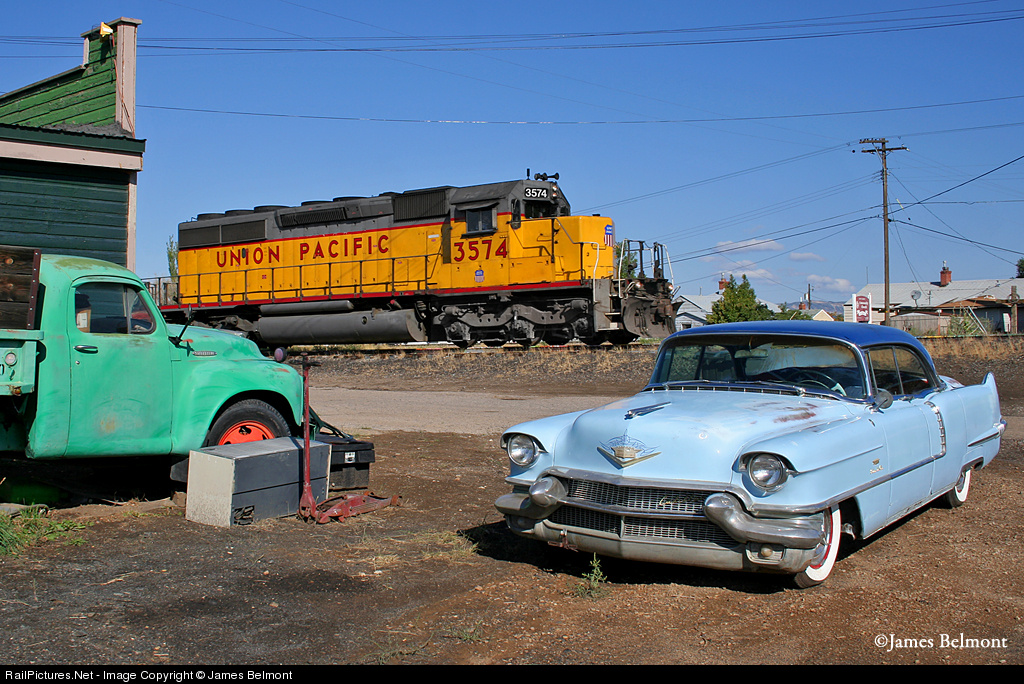 Here's a little slice of Americana for you: A Union Pacific SD40-2 rolls through the tiny desert community of East Carbon City while classic Studebaker and Cadillac vehicles sit outside a local garage. Many thanks to the owner who allowed my to include these jewels in my photograph.
