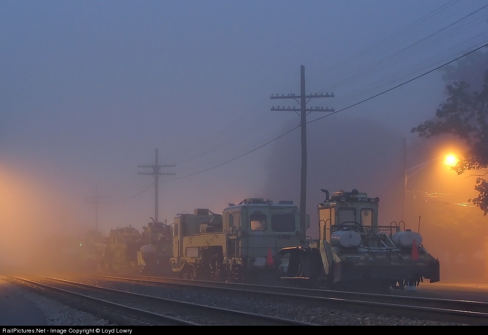 A CSX CAT surfacing team has tied their equipment down in Alderson for the weekend. It's 5:00am, and the fog will hold on for another 5+ hours.