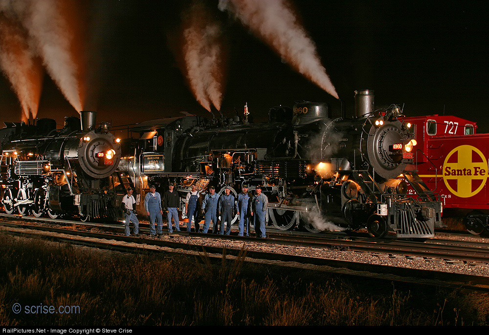 Grand Canyon Railroad employees pose with steam engines # 29 and 4960, at Williams Az. September 30th, 2005. Lets all prey for the return of steam to this line in the very near future. It sure would be ashamed not to be able to enjoy events like this one ever again on this railroad. September 30th, 2005. High quality image by Steve Crise Photo © scrise.com