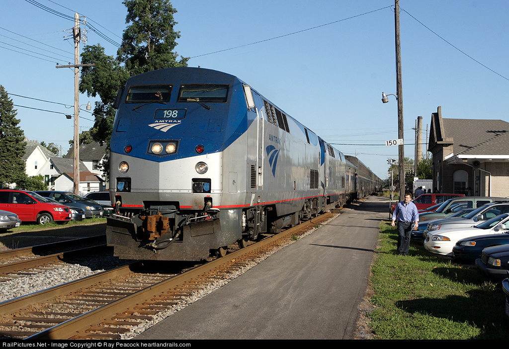 RailPictures.Net Photo: AMTK 198 Amtrak GE P42DC at Columbus, Wisconsin by Ray Peacock heartlandrails.com