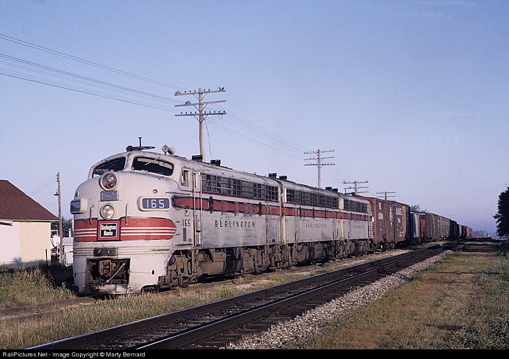 RailPictures.Net Photo: CBQ 165ABC Chicago Burlington & Quincy Railroad EMD F7(A) at Miledgeville, Illinois by Marty Bernard