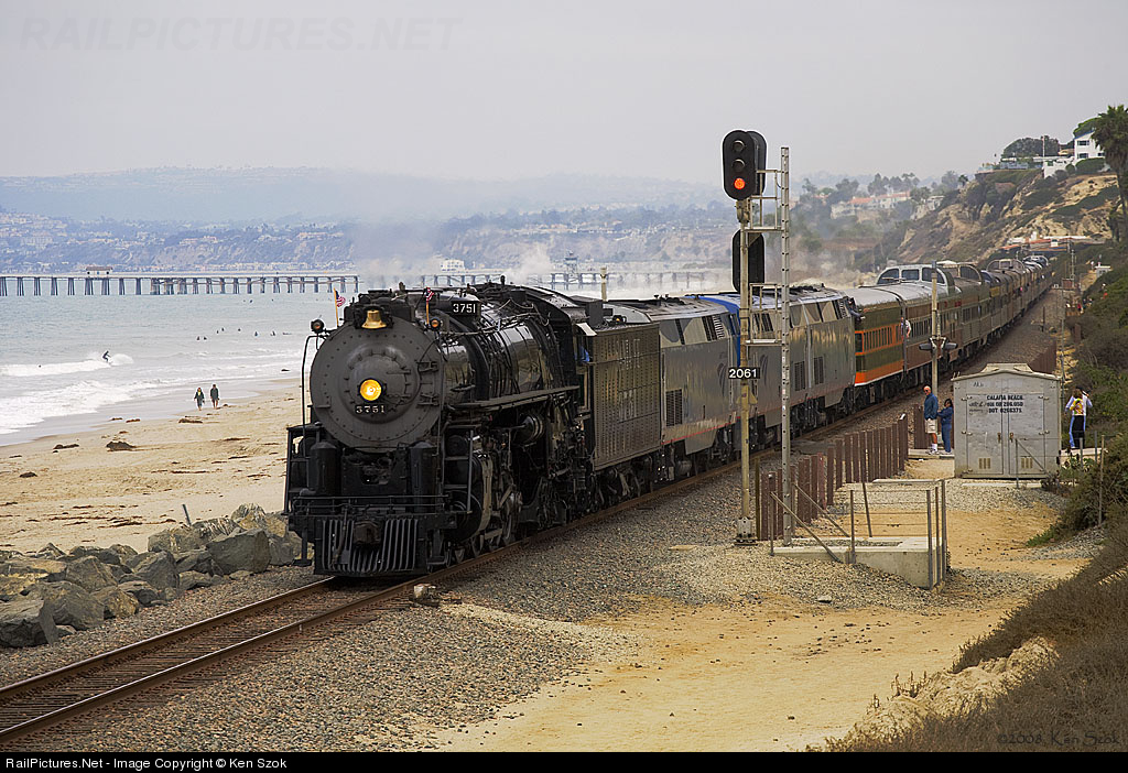 RailPictures.Net Photo: ATSF 3751 Atchison, Topeka & Santa Fe (ATSF) Steam 4-8-4 at San Clemente, California by Ken Szok