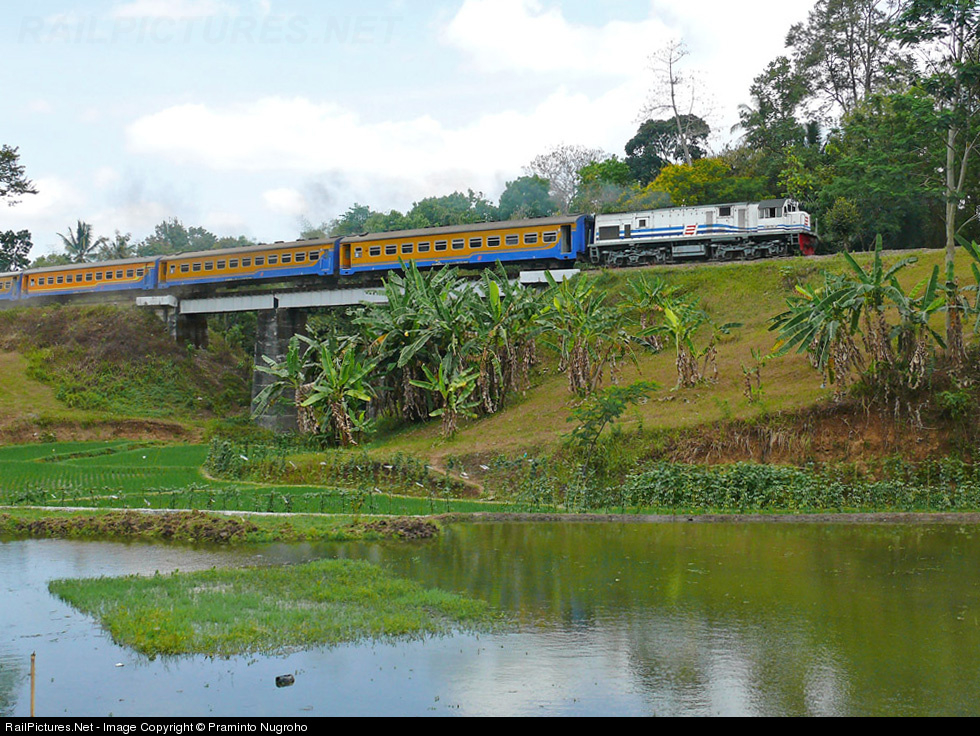 | On my way back home from Malang, I found this spot, and I couldn't resist the temptation to take some shots. Here is KA 965 rumbles over a bridge between Kesamben and Wlingi. |