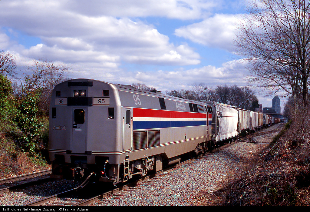 | The engine from the northbound Carolinian had to be removed to help push a stranded NS freight out of its way so it could arrive at the Raleigh station only a mile away about 2 hours late. |