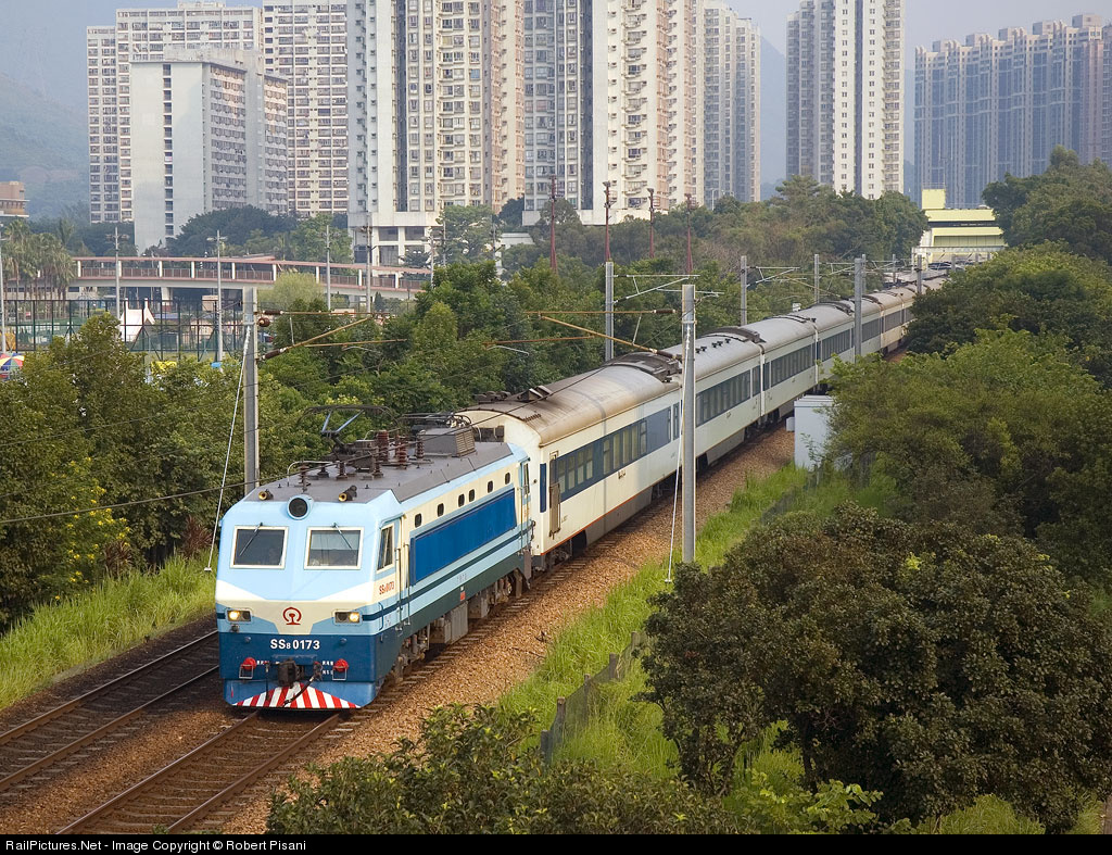 | T98 is a long distance train from Hong Kong to Beijing and is seen rolling through Fanling station minutes from the border with China. The train is only 30 minutes out of Hung Hom terminal and will arrive in Beijing 24 hours later. |