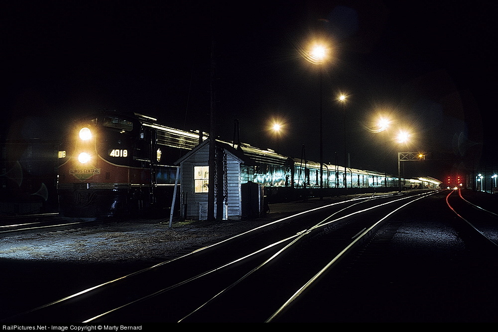 The train is the southbound Seminole. This was an Illini football weekend and I was there visiting a railfan student close friend. He suggested the night shot having scoped it out. Two flashes, one to the nose and one to the side, both of which he did.
