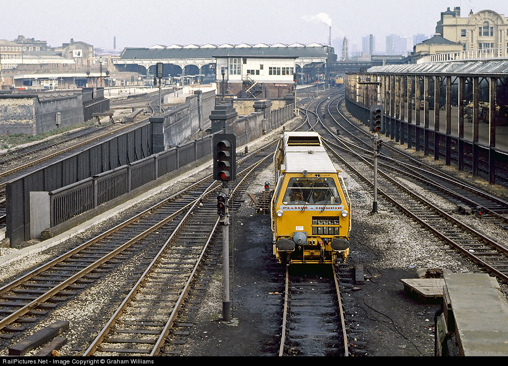 An old shot from 1980 of an unusual view of Manchester Victoria Station. The scene has completely changed now. The platforms on the left have all gone. A new events arena has been built here and goes over almost all the tracks. The canopy on the left has gone, as has the signal box. There has been a complete remodelling of the tracks. A great old station completely ruined, in my opinion. This was the station where I first started watching steam trains properly back in the late 1950s. A track maintenance machine is parked in the foreground, while in the distance, you can just see a Class 25 waiting for its next duty of banking heavy freight trains up the 1 in 37 gradient to the east.