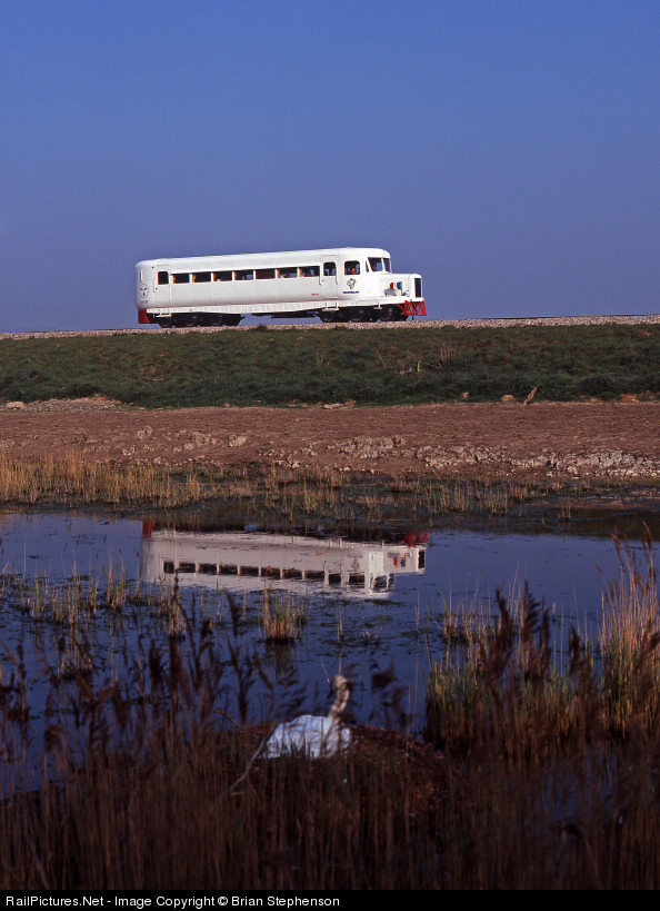 | One or three swans? The preserved Michelin rubber tyred railcar from Madagascar is seen running on the Baie de Somme railway in Northern France. Note the six-wheel bogies under this vehicle. |