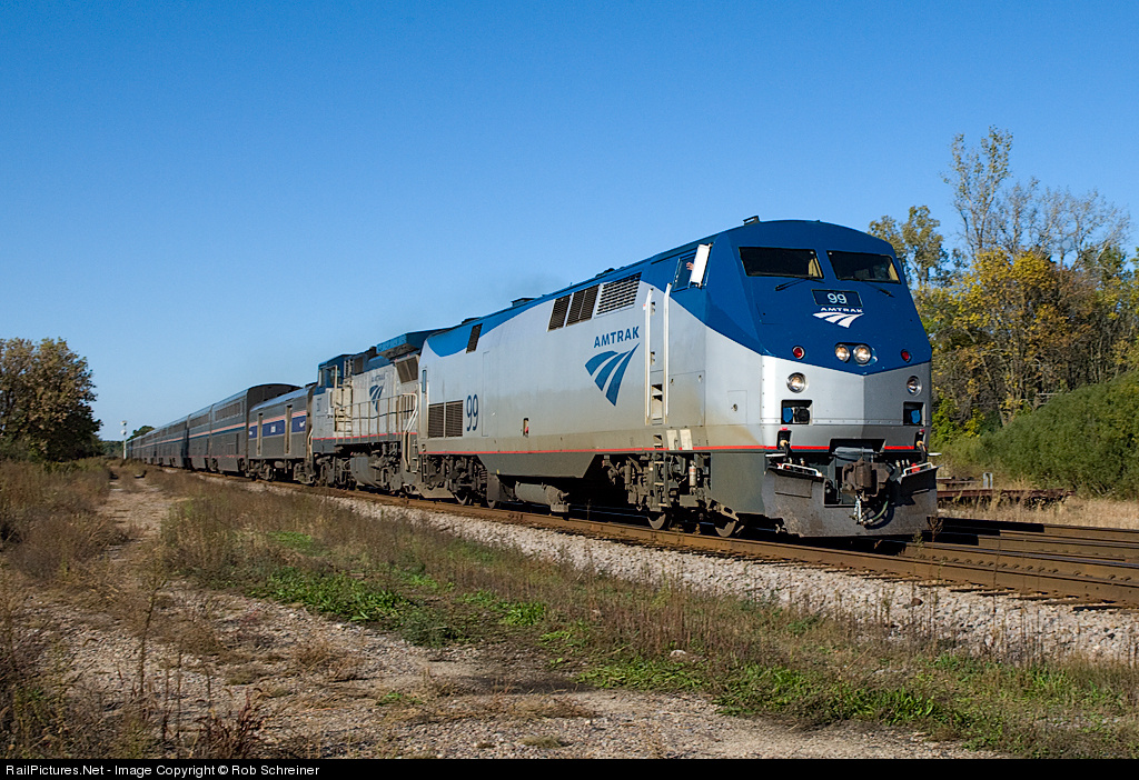 RailPictures.Net Photo: AMTK 99 Amtrak GE P42DC at Wadsworth, Illinois by Rob Schreiner