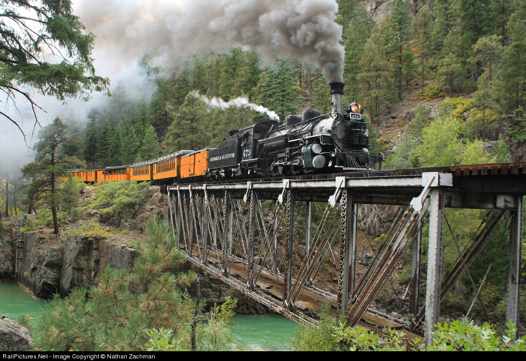 RailPictures.Net Photo: DSNG 473 Durango & Silverton Narrow Gauge Railroad Steam 2-8-2 at High Line Bridge, Colorado by Nathan Zachman