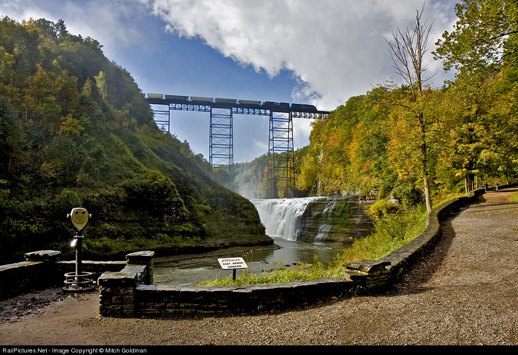 Having previously caught CP, D&H, and NS units over the Falls, I was happy to see Conrail on this spectacular Fall morning. This image, perhaps the first of such on RP will give viewers a better feel for the park.