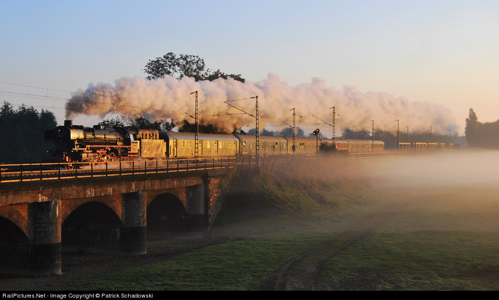 The Fog was just gone and warm morning light shine on 41 360 with a museumstrain to Gerolstein.