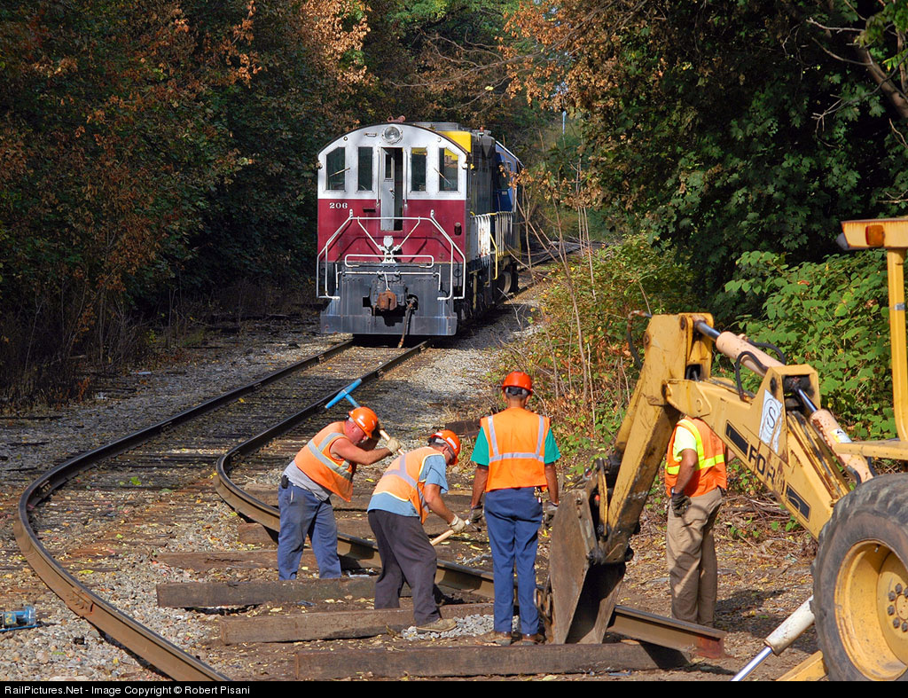 The NYS&W Southern Division main is temporarily swung over to the station "house track" so 206 can be placed on display at the Maywood Station Museum. Initially a cosmetic restoration is planned for this 1942-built original NYS&W unit.
