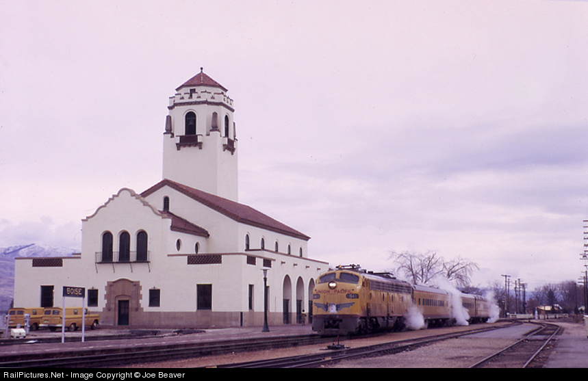 Depicts Amtrak's "Pioneer" service, which operated from Denver to Seattle, via Salt Lake City and Boise. The route was discontinued in 1997, thus leaving most of the upper Intermountain region without passenger rail service since.