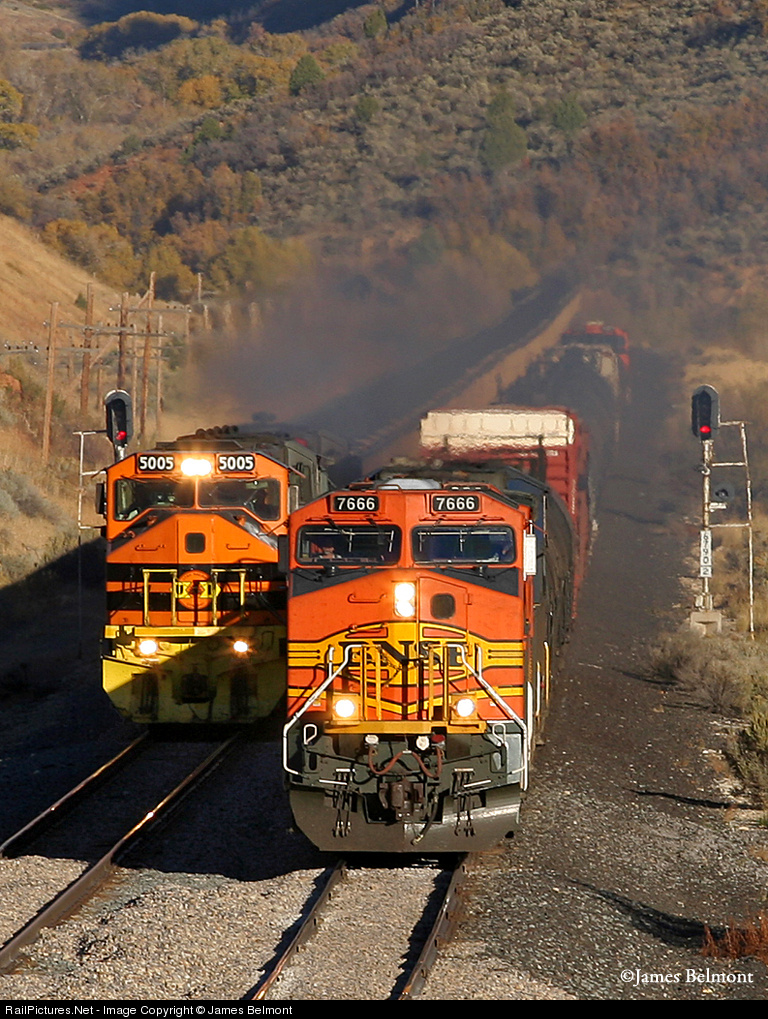 Making good use of CTC and two main tracks, UP dispatcher #78 has lined a Utah Railway coal load west down track #1 and a BNSF manifest west down track #2. A BNSF DPU helper (40 cars behind the 7666) is barely visible in the exhaust.