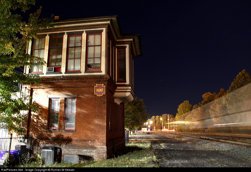Eastbound 20V eluminates the Hunt Tower and the fall foliage as other railfans get their pictures...