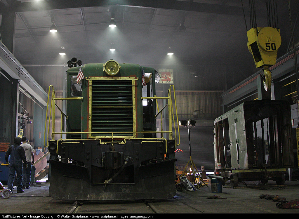 | Cass Scenic Railroad's new 44ton diesel sits in the Cass shop. The engine which was purchased by the Mountain State Railroad and Loggin historical association is currently undergoing repairs in the Cass Shop. Unlike Mt Washington, Cass's diesel will only be used for shop switching. |