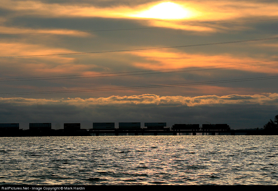 An eastbound intermodal crosses Sandusky Bay as a huge storm front moves in off of Lake Erie leaving no doubt it would be a soggy 4th of July 2008.
