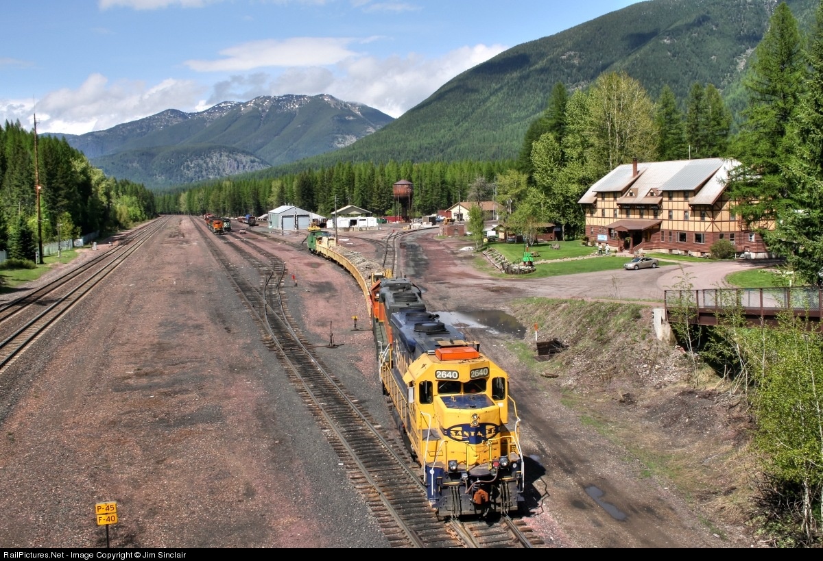 The day's work done, a BNSF work train with a former ATSF GP35u backs into the Essex Yard for the night. To the right is the renowned Izaak Walton Inn, which was built in 1939 by the Great Northern Railway to house helper crews year around and snow removal crews during the long, harsh Rocky Mountain winters. The Inn is a wonderful "getaway" for railfans (or anyone for that matter!) and is also an Amtrak flag stop for the Empire Builder. If you come to visit, consider taking the train and eliminate all the hassles of driving!