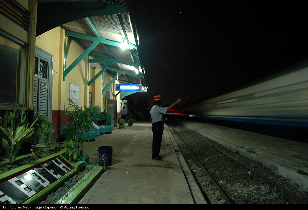 Train dispatcher is giving "Semboyan 1" to KA 124 (Senja Semarang) while its cruising at Kedunggedeh Station.