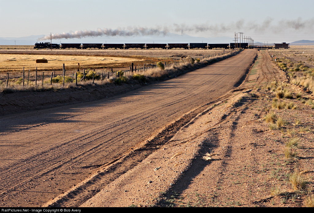 In early morning light, the ex LSI Alco 1910-built Consolidation heads its freight consist across the desert landscape between Alamosa and Fort Garland. It will form a photo charter through La Veta Pass for the SLST tour group.