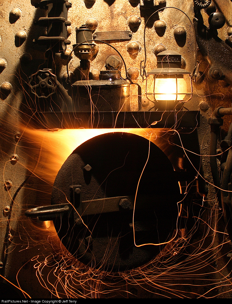 Wood is used to keep No. 4 hot overnight, resulting in some sparks from the firebox. This photo was taken around 2 AM.