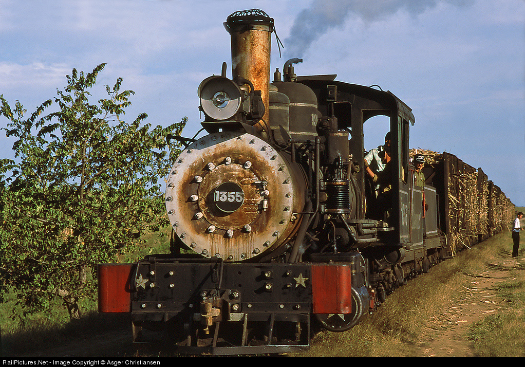 | Oilburned E 1355 was built by Baldwin, USA, in 1920. Here seen on its way in the afternoon with a train loaded with sugarcanes |