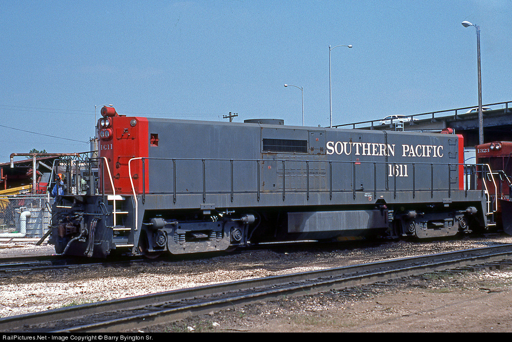 Built from SP U25B 6754. By the mid 80s it had calmed down, with a dropoff in pool power, but back in the late 70s, here on Opelousas Street near the Hardy Street shops, you could not BUY a parking spot on the weekends, what with all the pool power from the east and north. Hostlers would bring the sets in and slow for assignment at the fuel rack, and we would just pick 'em off like a turkey shoot.