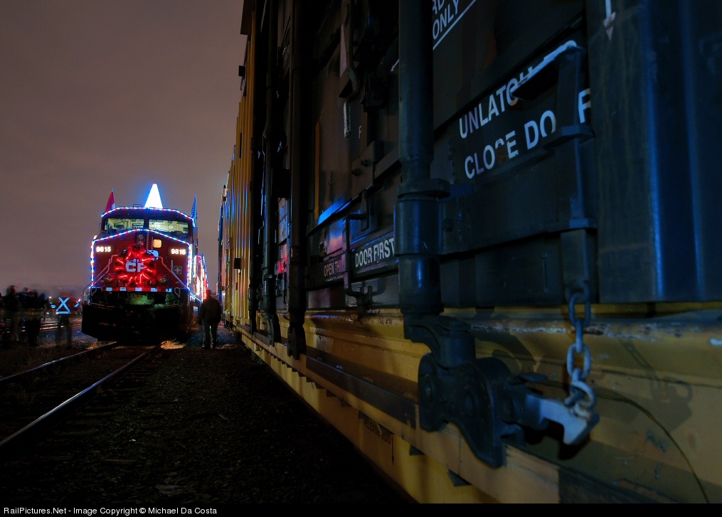 | The 10th anniversary holiday train stops by Lambton Yard for the 18:30 show for all the spectators, meanwhile other spectators gather in front of the decked out locomotive to have their picture taken. |