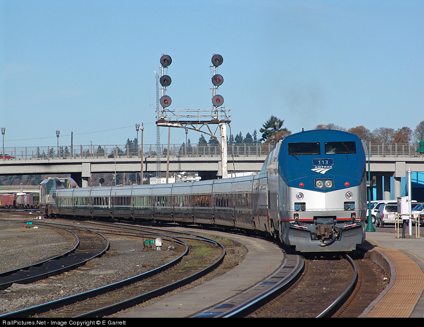 | Northbound Cascades Service train 506 departs the first stop in Washington State with a full load of clients anticipating the Thanksgiving holiday. The shove comes from a Genesis unit substituting for the normally assigned F59. |