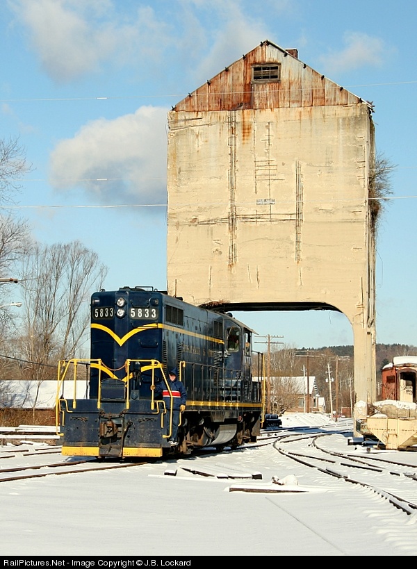 THis ex- C&O GP7 pulls under the old coaling tower as the conductor spots the train to couple. Today it will head the HVSRY Santa Train.