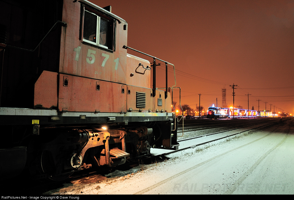 CP 1571 watches on as the Canadian Pacific Holiday Train arrives in town to entertain and perform for it's 10th year anniversary.