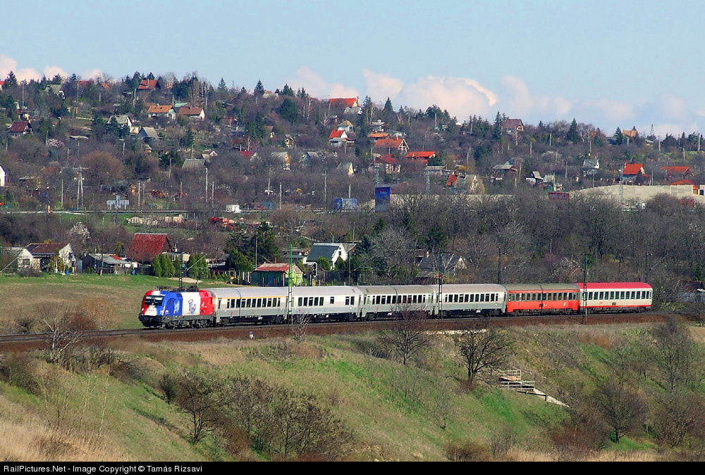| "Avala" InterCity train to Hegyeshalom and Vienna is passing under Biatorbágy village. The train is coming from Beograd through Budapest Keleti station into Hegyeshalom then into Wien west station. The train goes away from Hegyeshalom to Vienna after the engine driver and passenger exchange. |