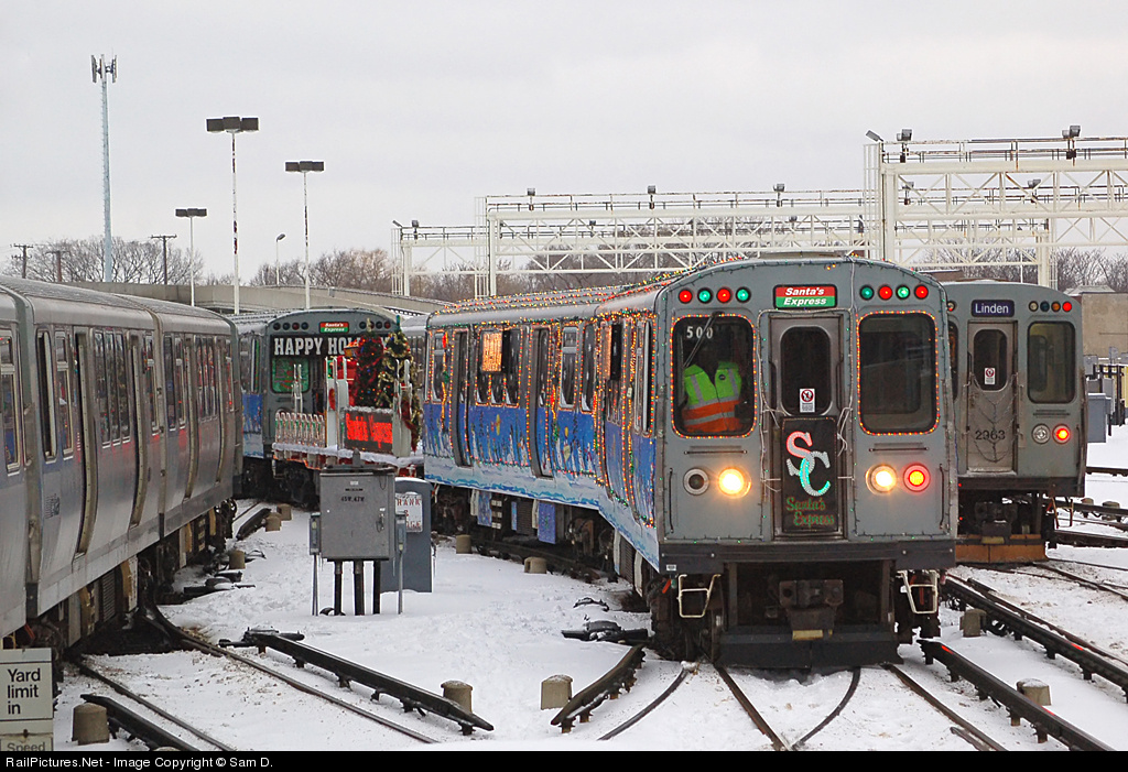 The CTA Santa Express comes out of the yard, ready for another trip spreading holiday cheer.
