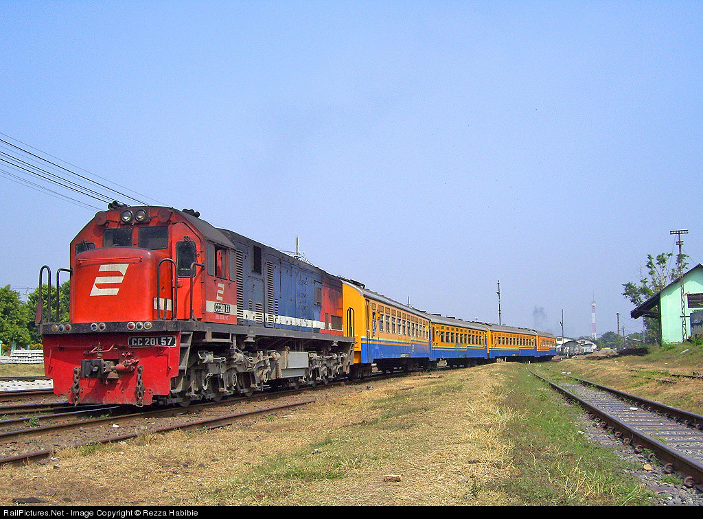 At morning day,economy class train "Progo" hauled by CC 201 57 with old scheme red and blue,from Jakarta Pasar Senen Station to Lempuyangan Station Yogyakarta,arrived at Lempuyangan Station and after drop the passenger,the train is shunting to "spoor cucian" or washing track,to cleaning and to take care.