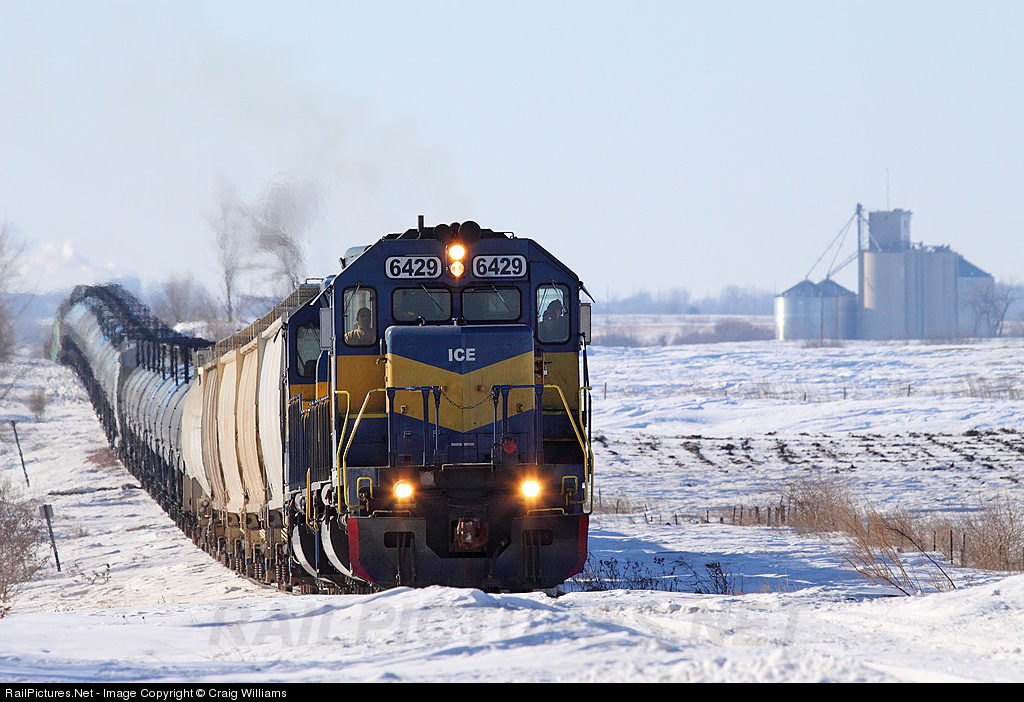 The Mason City, IA to Bensenville, IL manifest train has just gotten on the way out of Mason City. The train is passing MP 113, which is 113 miles west of Marquette, IA. Only 2 SD40's are needed to handle the traffic out of Mason today. Portland is the elevator in the background.