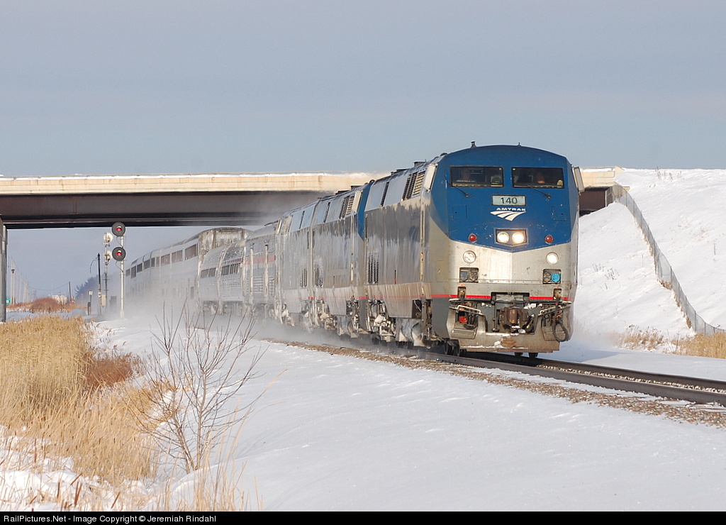 RailPictures.Net Photo: AMTK 140 Amtrak GE P42DC at Little Falls, Minnesota by Jeremiah Rindahl