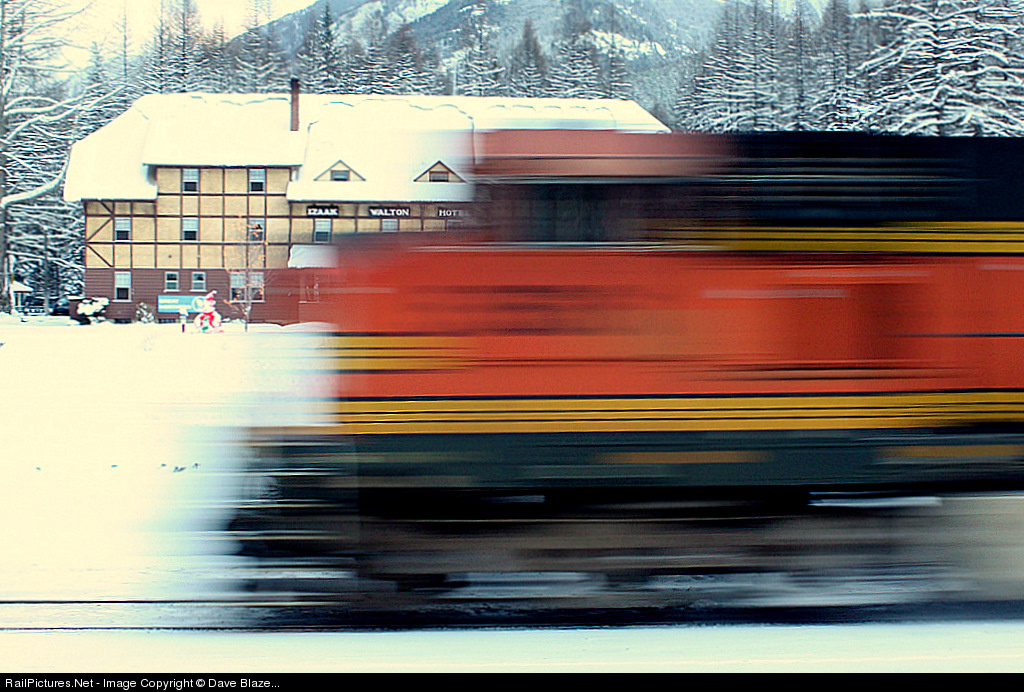 It's 4:30 PM on Christmas Eve, and traffic has been slow on the former Great Northern Mainline as BNSF has tied down as many trains as possible. However, this westbound autorack job is still burnishing the high iron as the crew hustles home towards Whitefish about 50 miles away. Across the tracks to the north the Izaak Walton Inn, built in 1939 by the GN, is full of holiday revelers enjoying the splendid isolation that is the Northern Rockies in winter.....not to mention the splendid view for those lucky enough to have a trackside room!