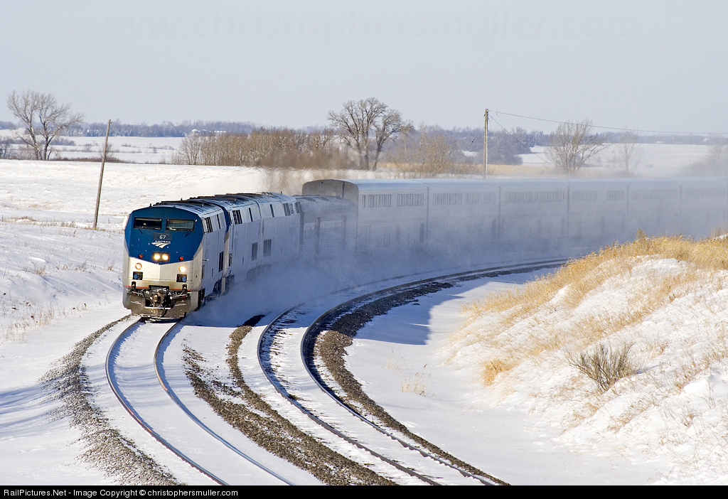 RailPictures.Net Photo: AMTK 67 Amtrak GE P42DC at Lake Park, Minnesota by christophersmuller.com