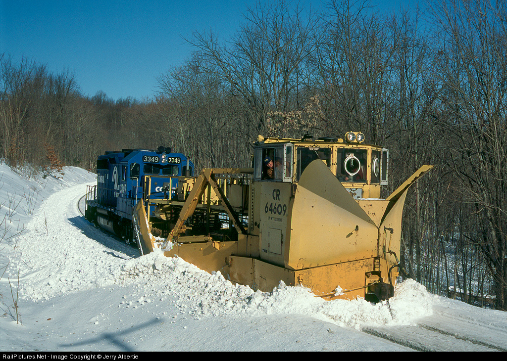 | Cleanup continues after the blizzard of 96. Today the crew is on a branch, Conrail's Hudson secondary the former L&HR railway. Jordan spreader is #64609.