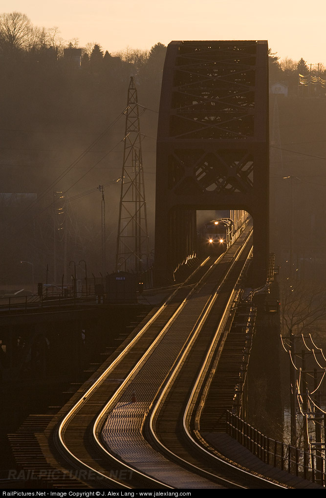 Dwarf position light signals guard Isle interlocking as 21M is about to enter the main span of the historic Ohio Connecting Bridge. In the early 1900's the OC bridge featured a mid-bridge spur to a Rail Elevator that allowed coal hoppers to be shuttled to a power plant on Brunot's Island.