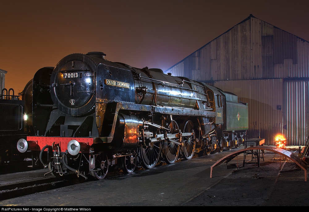 | As operations are wound down for another day, 70013 'Oliver Cromwell' sits in the cold yard. This was not a photoshoot, it was illuminated only by the yard lights and improved through HDR techniques only. |