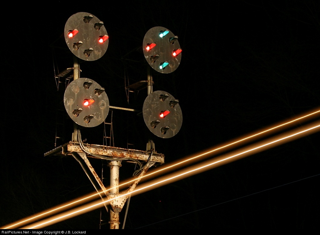 A close up of an old N&W CPL in action as a train changes the signal from green to red.
