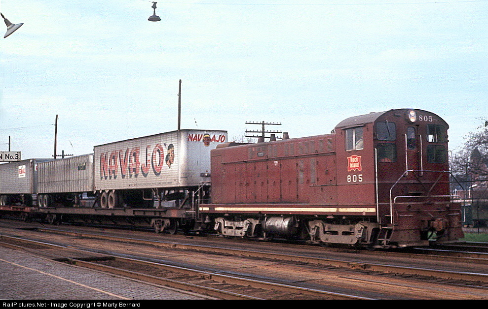 | This was when the Rock had a piggyback yard all the way downtown at the south edge of the Loop next to the LaSalle Street Station Leads. Baldwin Locomotive Works made 63 S-8s (54 A-units and 9 B-units) between 1950 and 1954. I don't even remember seeing a picture of a B-unit but Google found pictures! http://baldwindiesels.railfan.net/oim/index.html